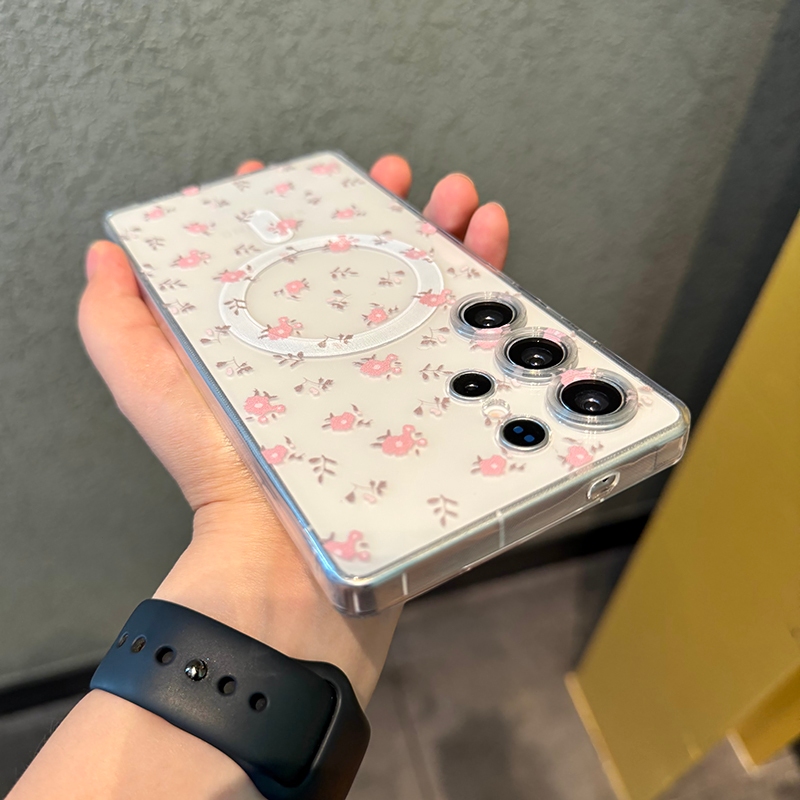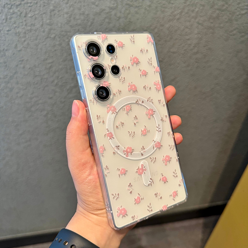 [Star] Kecil Pink Bunga Magsafe Magnetic Soft Transparent Shock Resistant Phone Case For Samsung Galaxy A56 A55 A54 A36