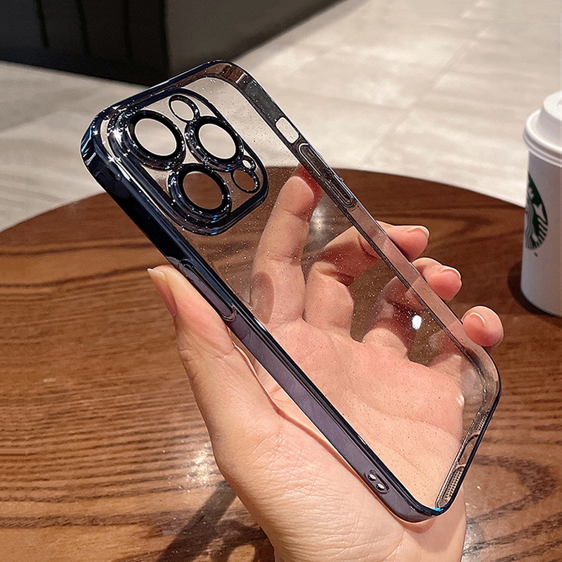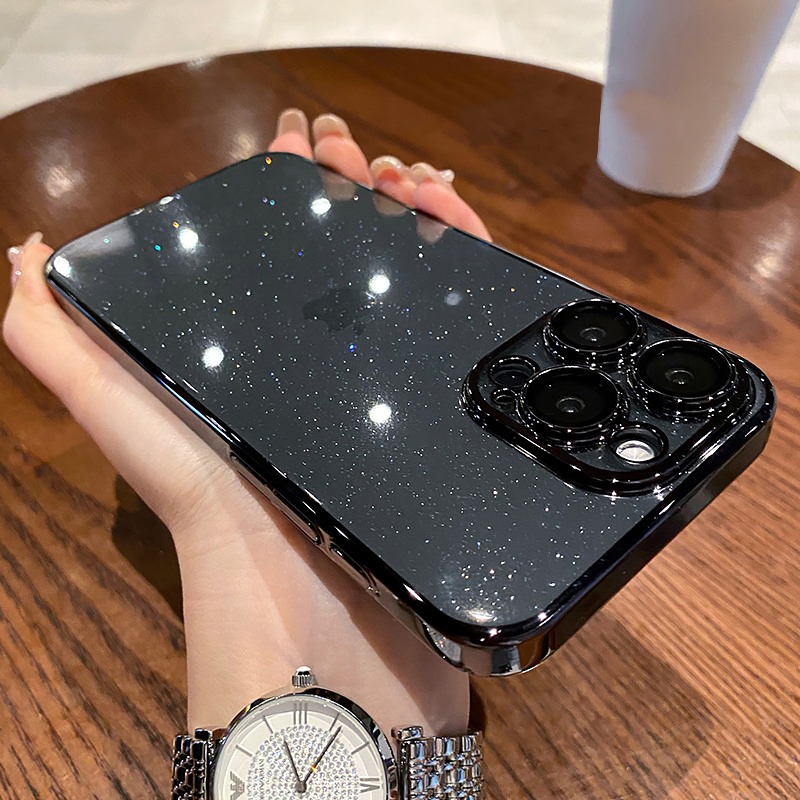 [Star] With Lens Films Glitter Electroplated Ultra Tipis Hard Transparent Phone Case For iPhone 17 16 15 14 Pro Max Plus