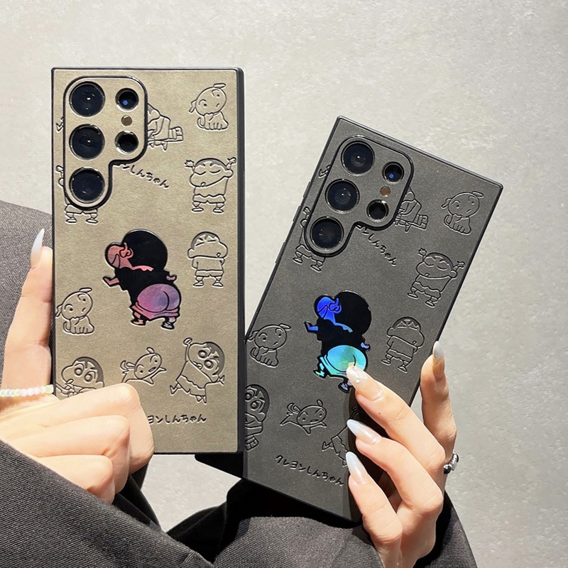 [Star] Funny Crayon Shin Chan Laser Leather Wristlet Phone Case For Samsung Galaxy A56 A55 A54 A36 A35 A17 A16 A15 A06 A