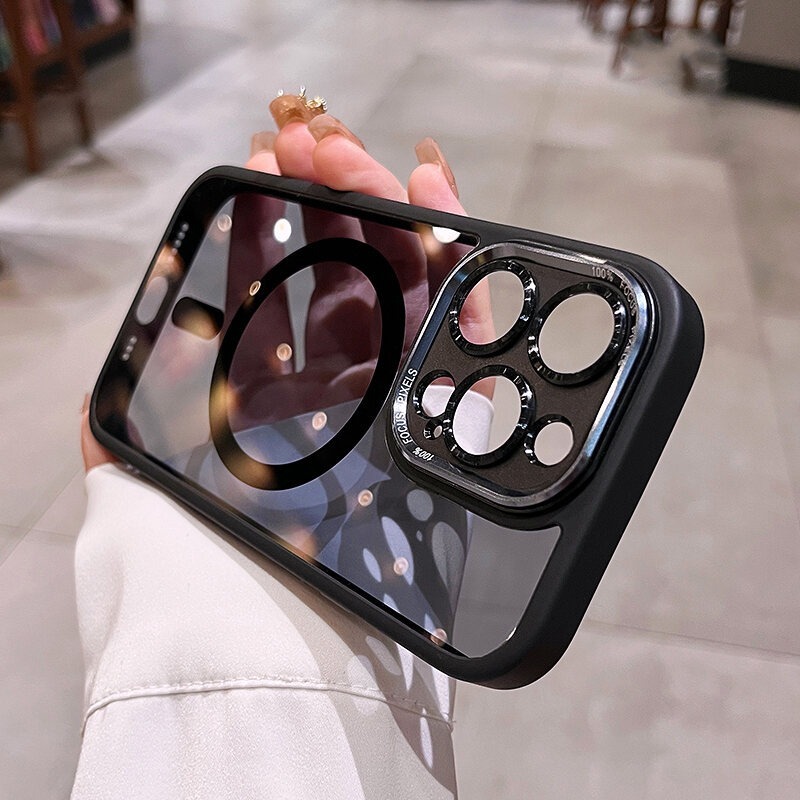 [Star] Luxury Metal Camera Lens Protection MagSafe Hard Clear Acrylic Phone Case For iPhone 16 15 14 Pro Max Plus 13 12