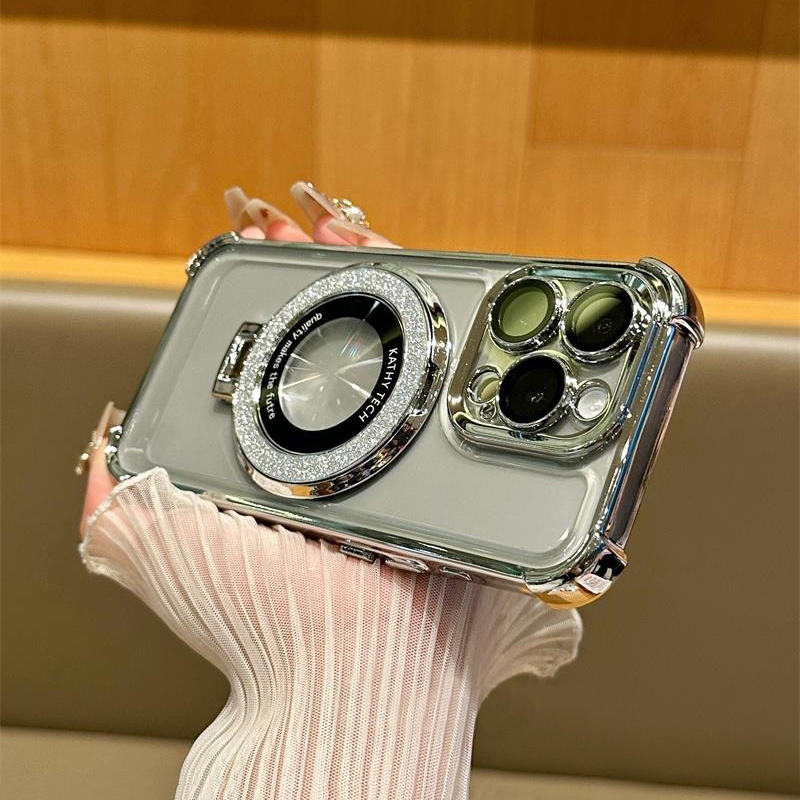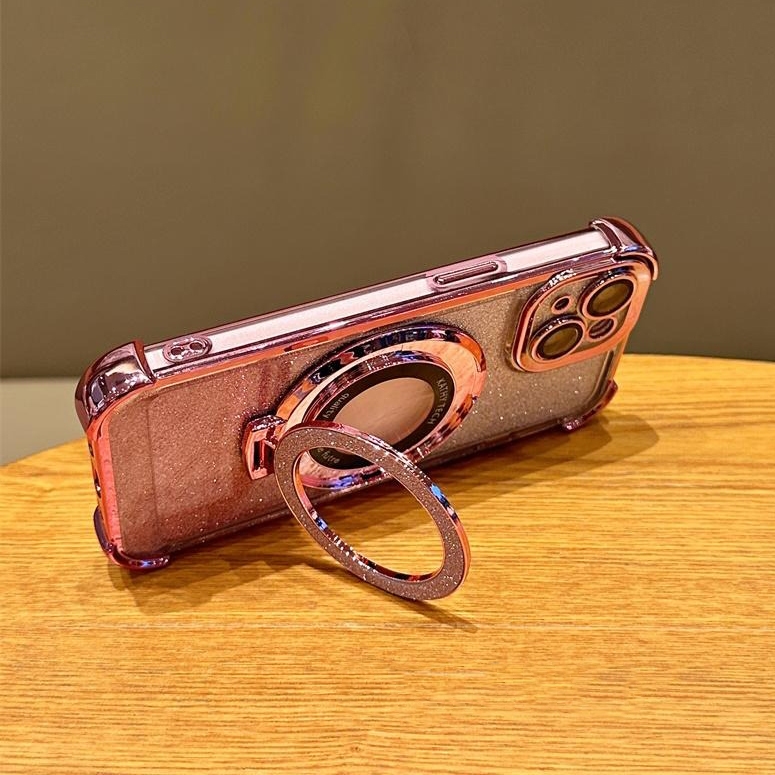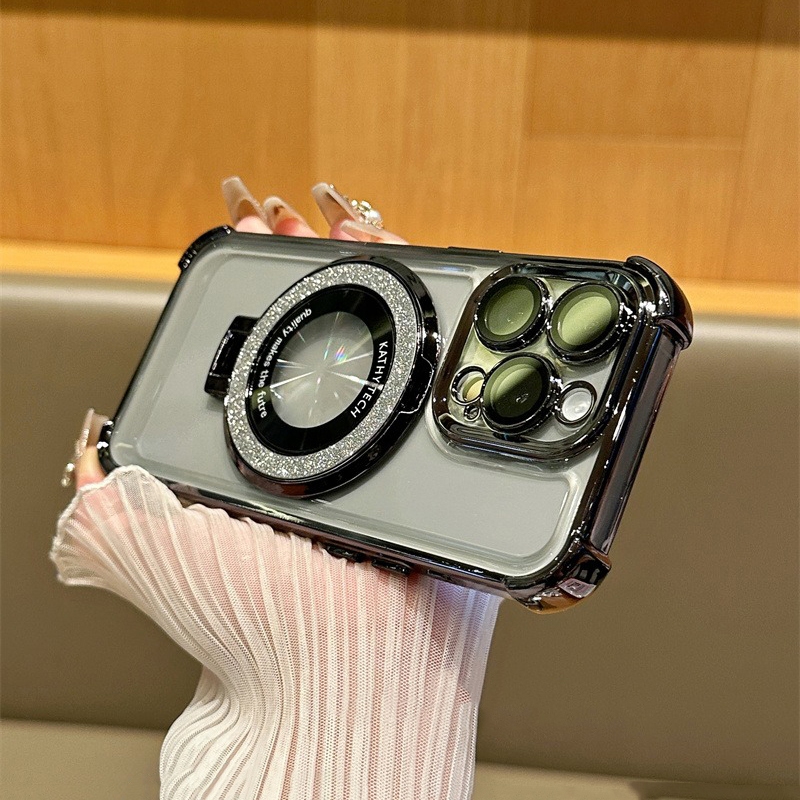 [Star] Glitter MagSafe Magnetic Bracket Airbag Anti-fall Phone Case For iPhone 17 16 15 14 Pro Max Plus 13 12 11 Pro Max