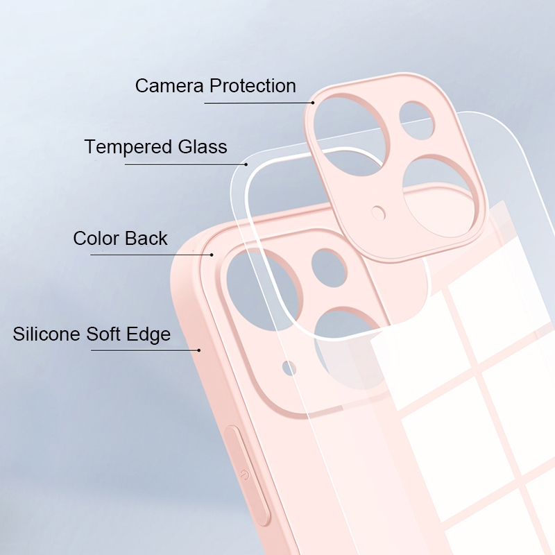 [Star] With Logo Macaron Color Tempered Glass Hard Anti-fall Phone Case For iPhone 16 15 14 Pro Max Plus 13 12 11 Pro Ma