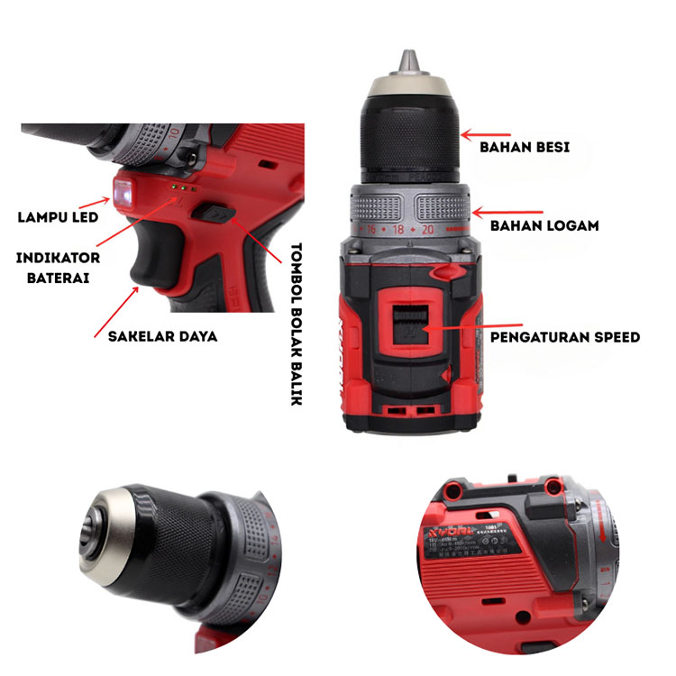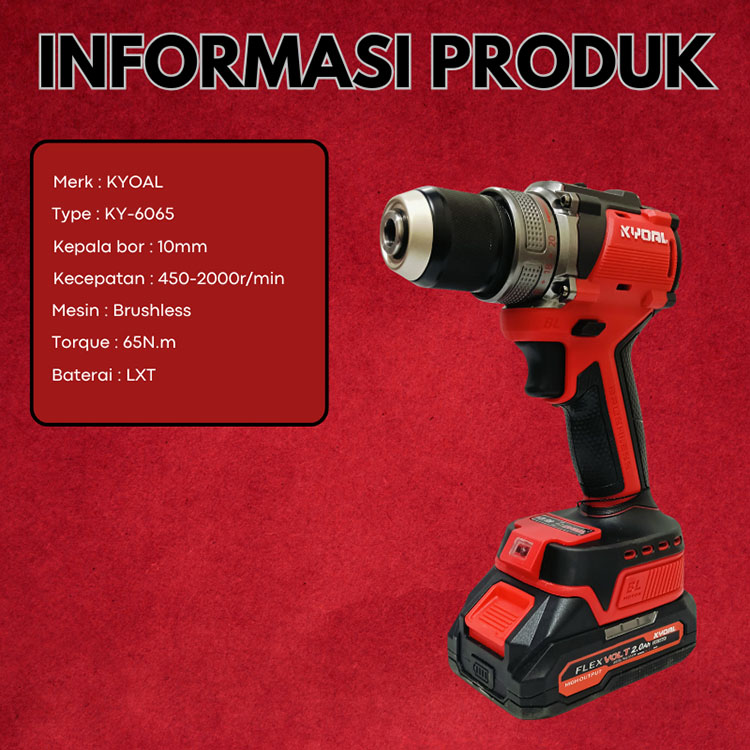 KYOAL Mesin Bor Cordles Portable Baterai Lxt 21volt Mesin Bor Cas Brushless 10mm - KY-6065