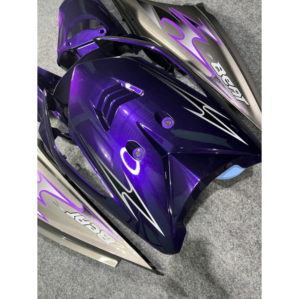 Cover body full set bodi halus Honda beat karbu ungu candy mix grey striping beat transparan vietnam style tahun 2008 sampai 2012
