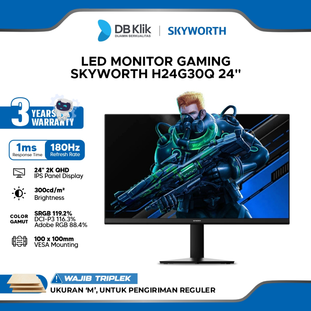 SKYWORTH LED MONITOR GAMING H24G30Q 24" IPS 2K QHD 180HZ 1MS HDMI DP