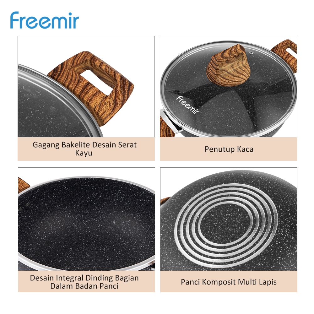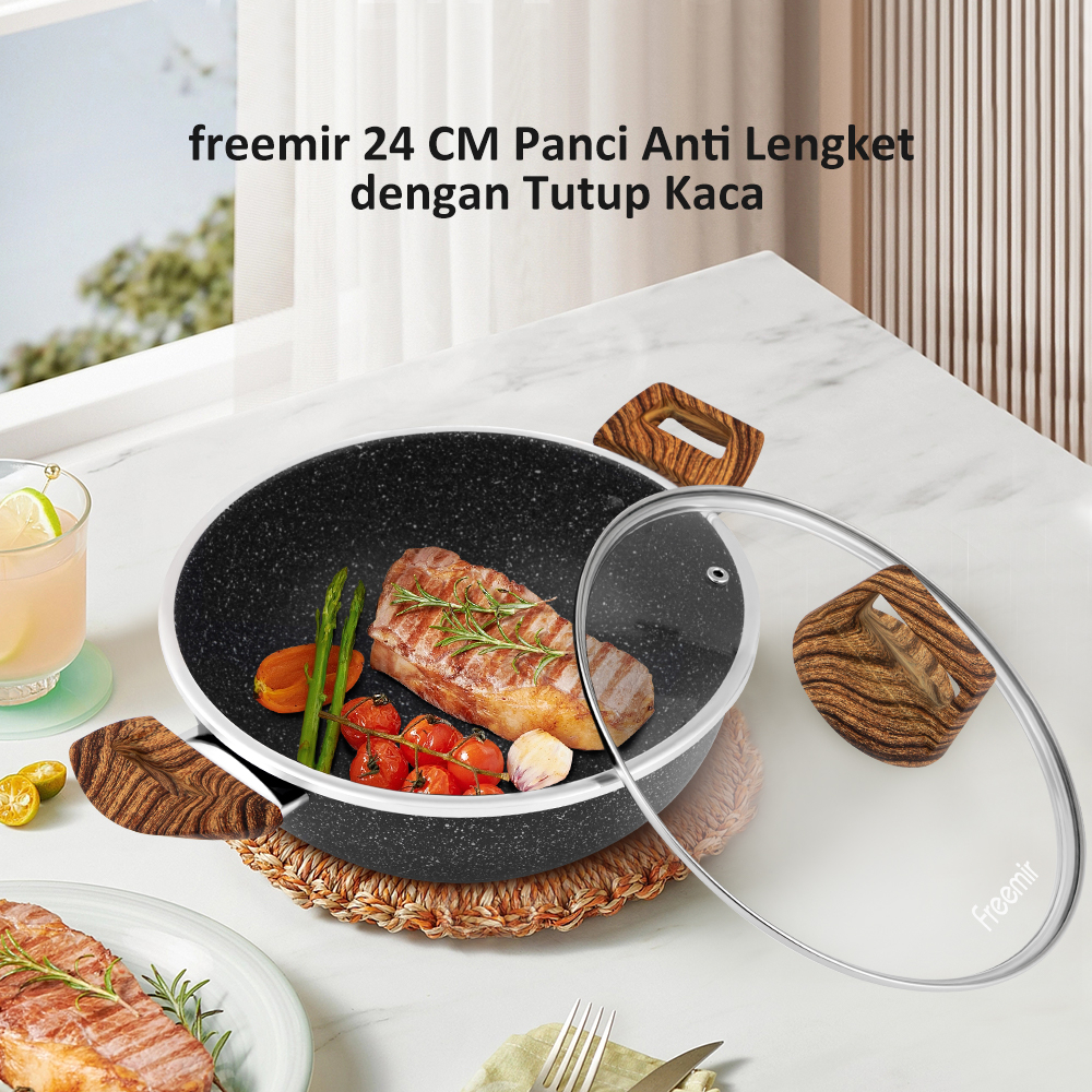 freemir Wajan Panci 24 CM Memperdalam Wajan Anti Lengket Wajan +Kukusan Serbaguna Granite