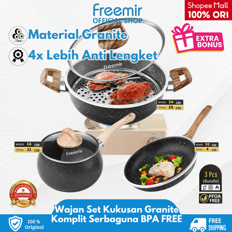 free Kukusan Wajan Granite Set Kukus Hemat 4 Pcs Hitam 24/24/16 Cm Anti Lengket Serbaguna
