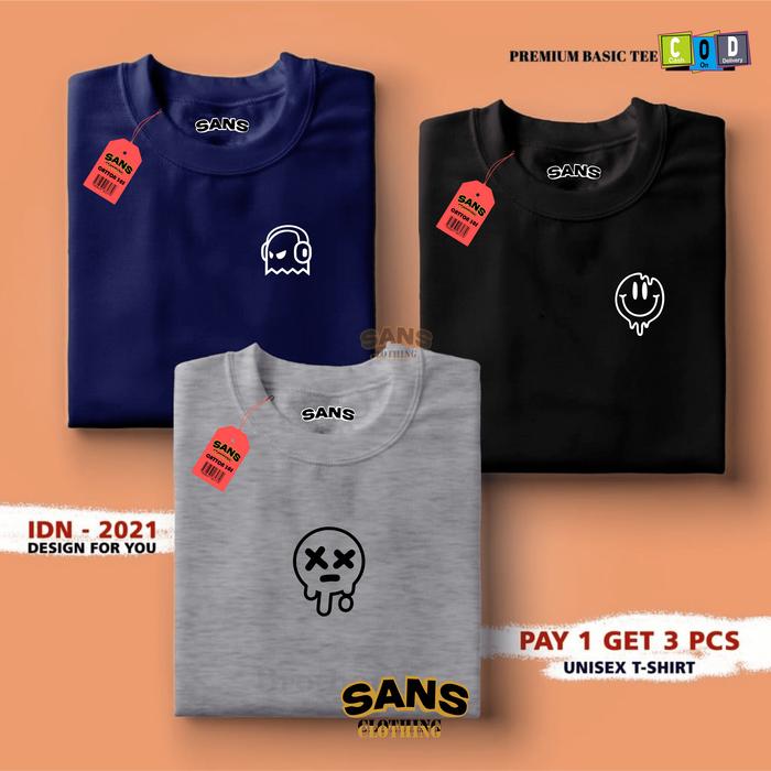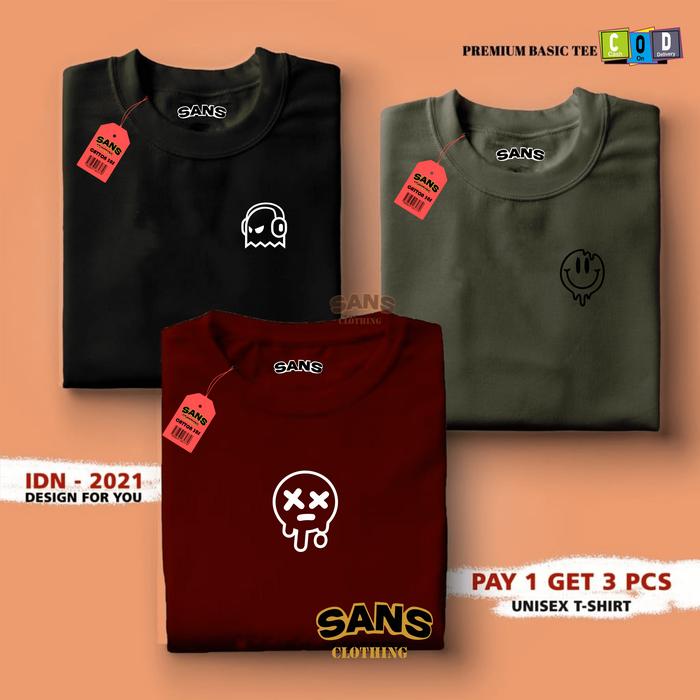 Buy 1 Get 3 Pcs(Promo )Sansris Apparel-Kaos Distro Pria-Kaos Terbaru Icon Tetes 100 PERSEN Premium - Army-Abu Tua-Cream, Xx