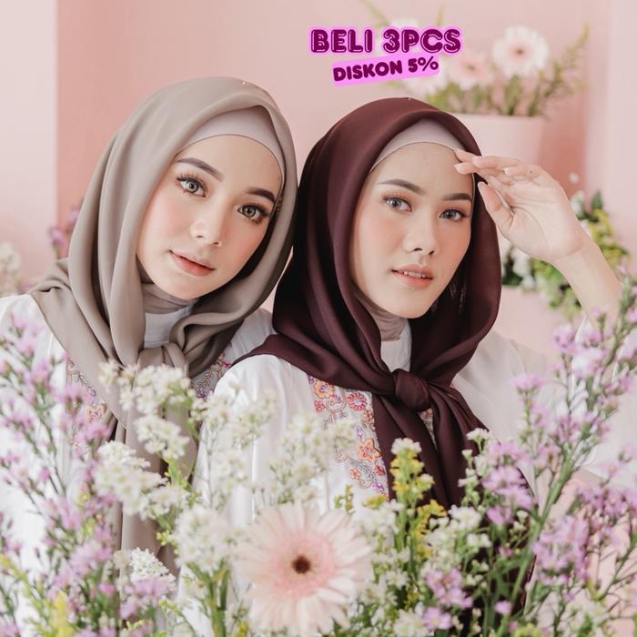 Rifanyhijab Bella Square Premium Wanita Muslim Jilbab Empat Pollycotton Plain Square - Powder