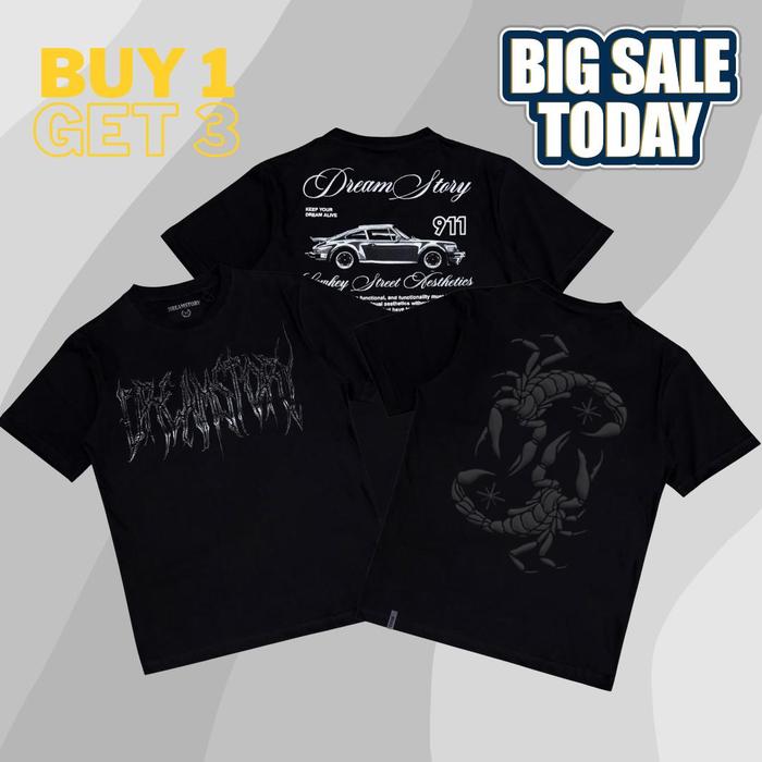 Buy 1 Get 3 Paket Hemat Kaos Grafis Hitam Lengan Pendek Pria Baju Oblong Ds Hoki Nyaman Distro Sablon Foaming Flocki