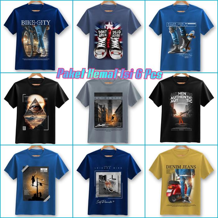 Kaos Oblong Paket Hemat Isi 6 Pcs Dewasa Dan Anak Motif Distro Terbaru Ukuran Fashion Pria Baju Katun Wanita Atasan Uni