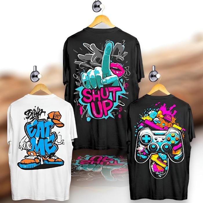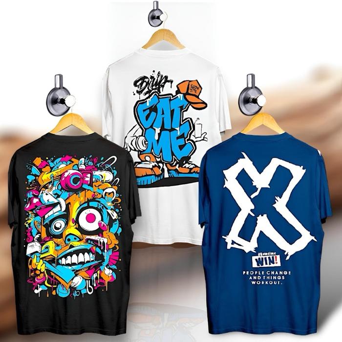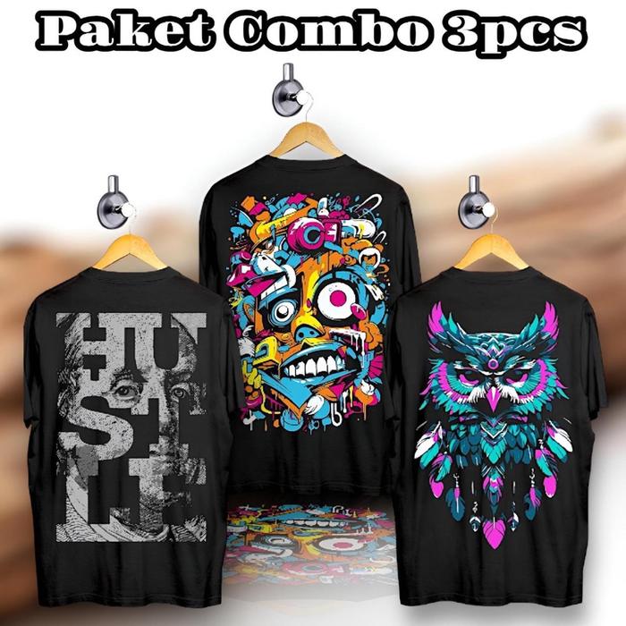 Paket Tiga Pcs Kaos Tshirt Distro Motif Gambar Belakang Bahan Katun Combad Ukuran M L Xl - Paket 1, M
