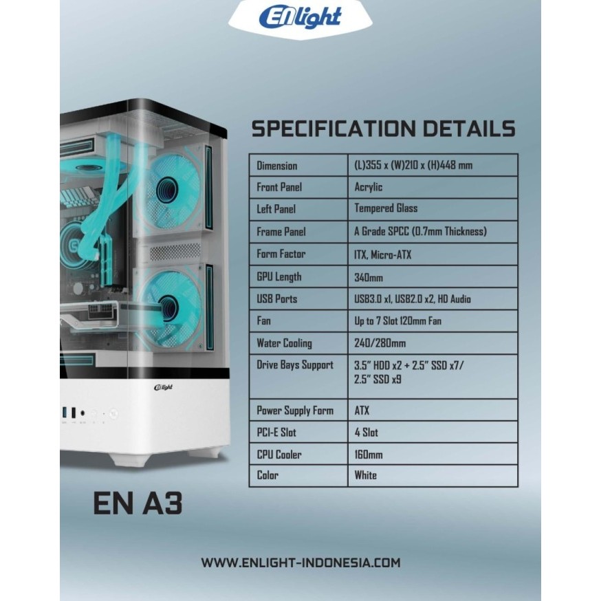 CASING PC ENLIGHT A3 WHITE M-ATX TEMPERED GLASS
