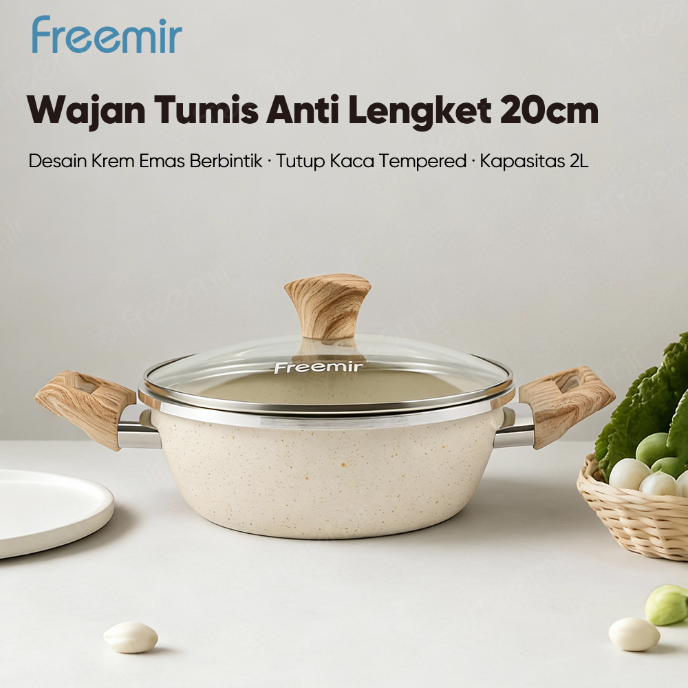 freemir Wajan Panci Granite Beige Series 20cm Anti Lengket Foodgrade Serbaguna