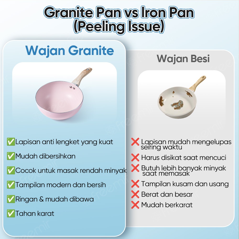 freemir Wokpan Anti Lengket 20cm Wajan Penggorengan pink Panci dan wajan dapur Cocok untuk menumis, omelet dan menggoreng