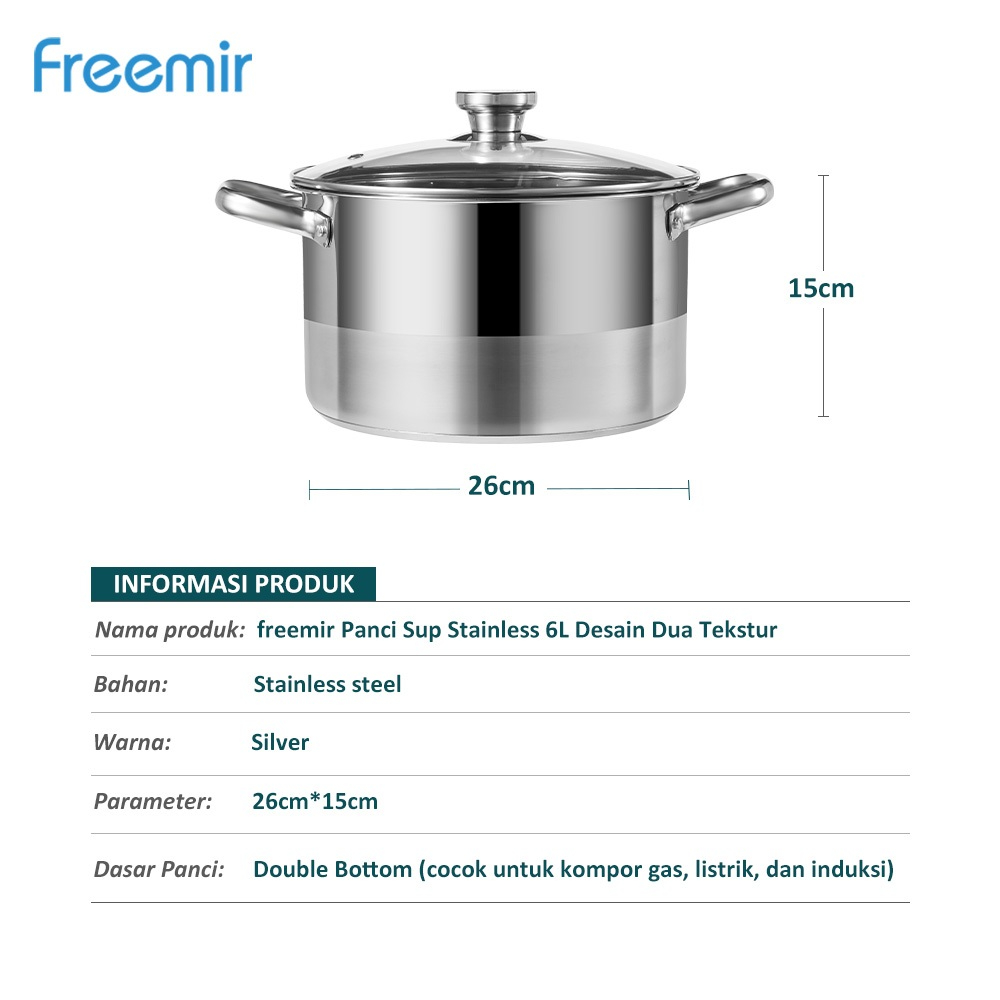 freemir Panci Sup Stainless steel 304 Double Bottom 26cm Goreng Rebus Premium 0-Coating