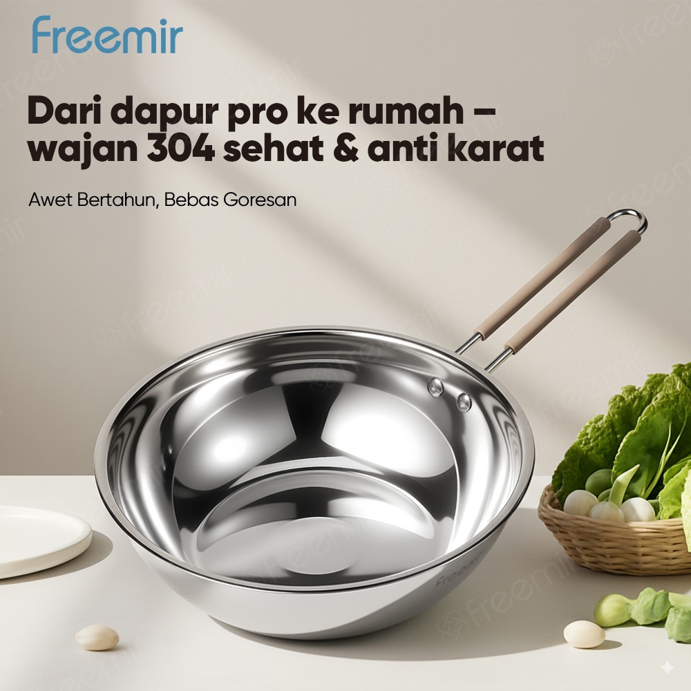 freemir Wajan Stainless Set Serie API SUS304 Induksi Bottom Anti Karat Panas Cepat Merata