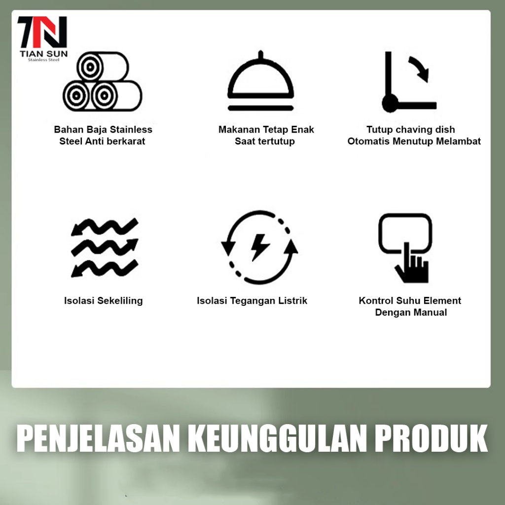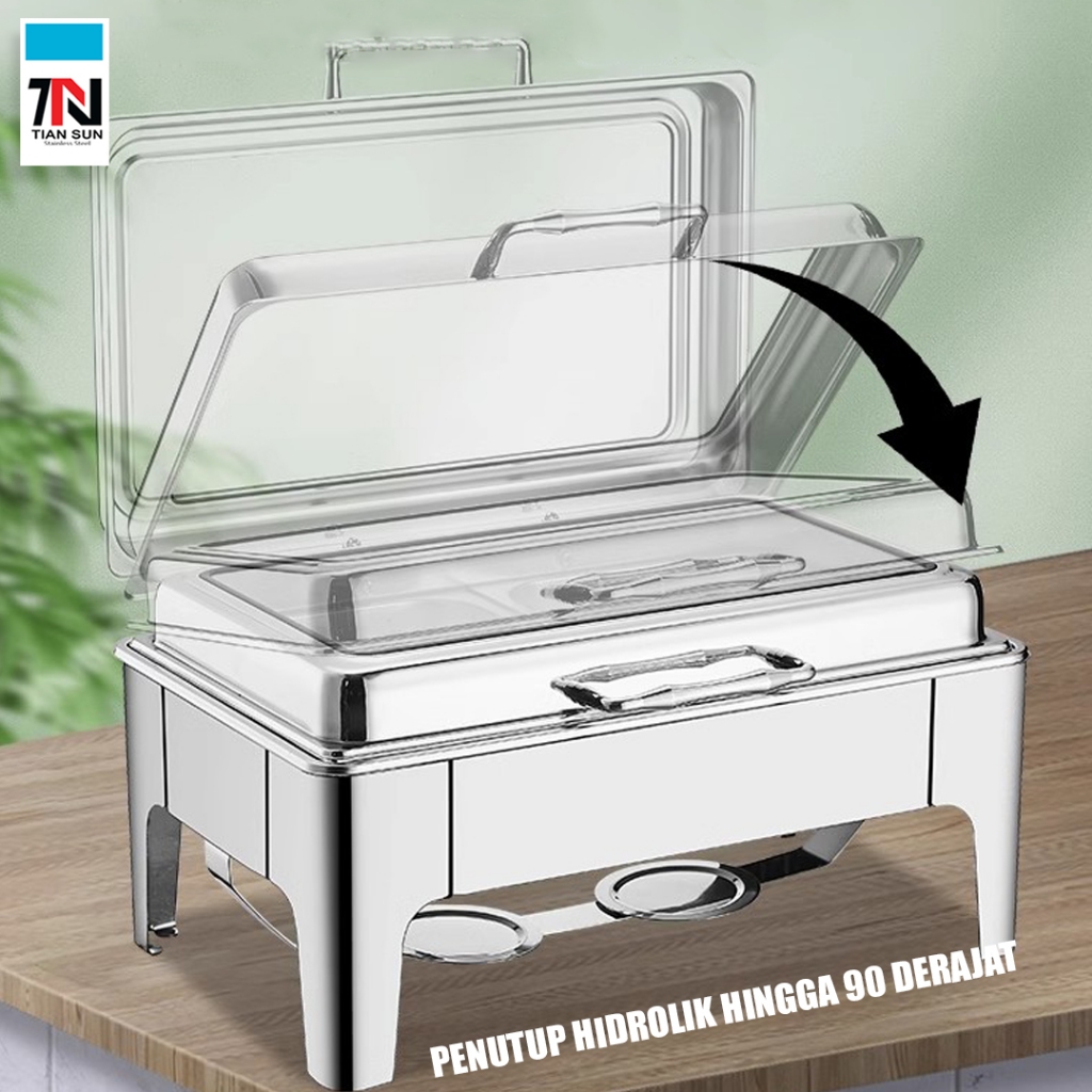 Tian Sun Chaving Dish Kaca Besar dan Penutup Hidrolik 90° / Rolltop stainless prasmanan 9L/13L & 6L