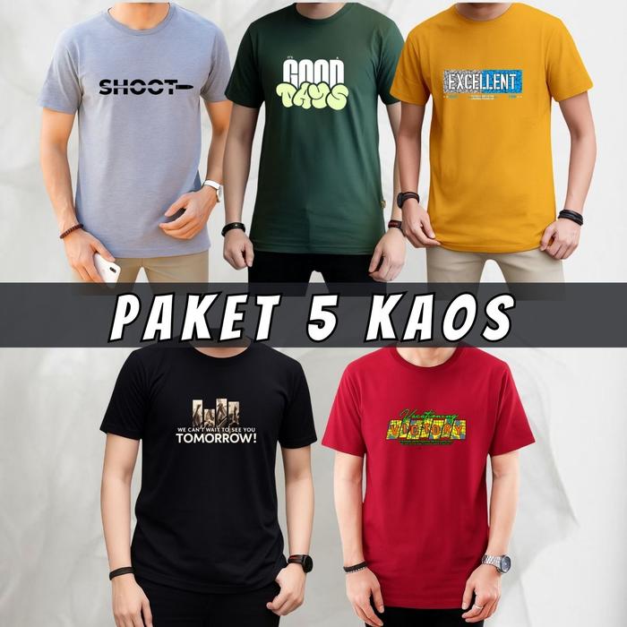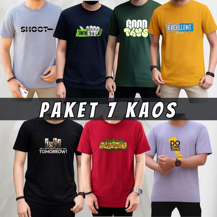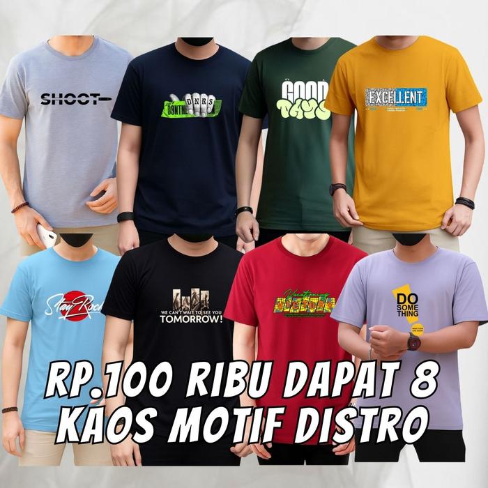 Paket Grosir 8 Pcs Kaos Motif Keren Dewasa Baju Pria Wanita Oblong Pendek Semi Katun Distro - 8 Kaos, L