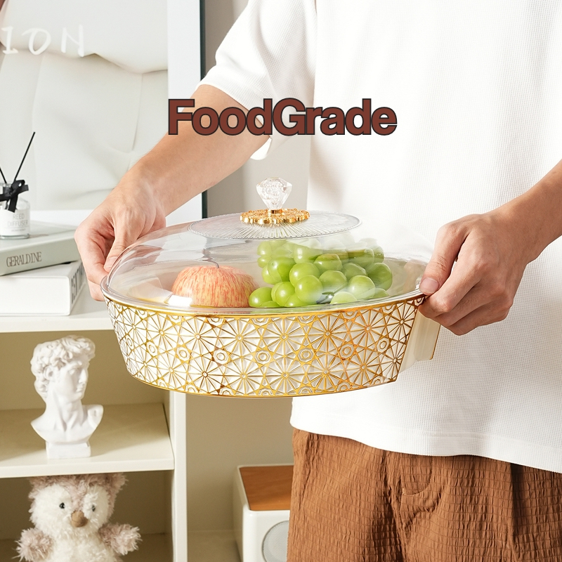 Muzy Tempat Prasmanan Motif Bintik Emas Wadah Prasmanan Aesthetics Storage Dengan Tutup Transparan Tahan Debu HSB864
