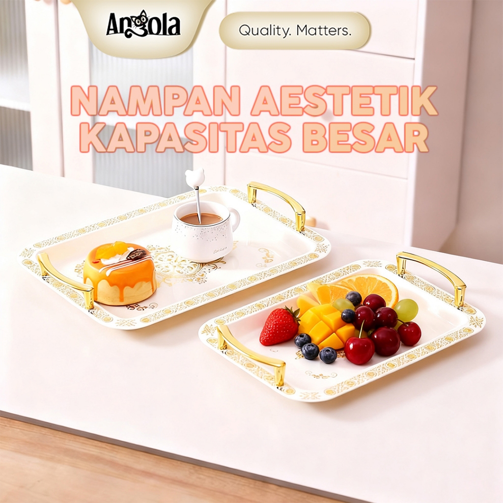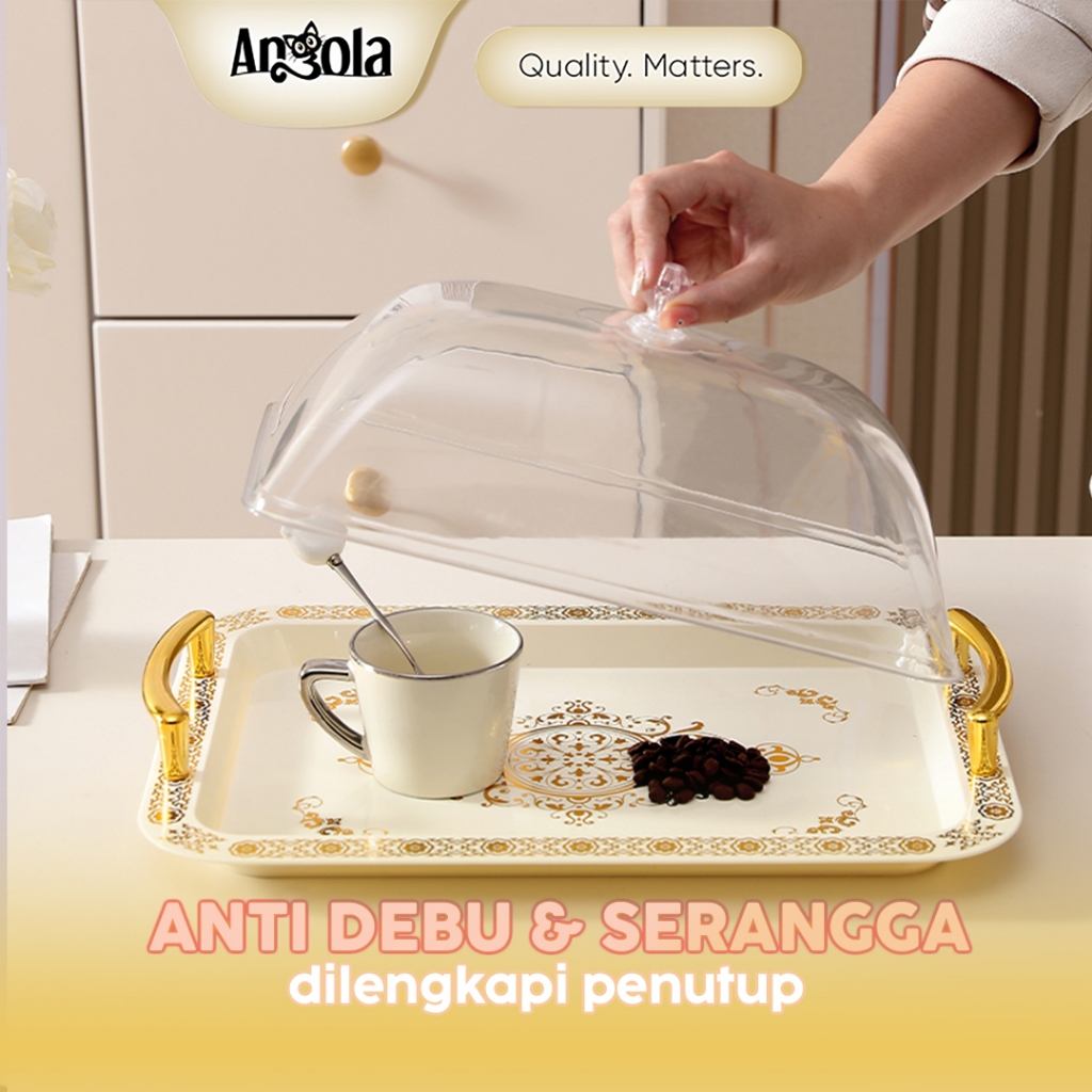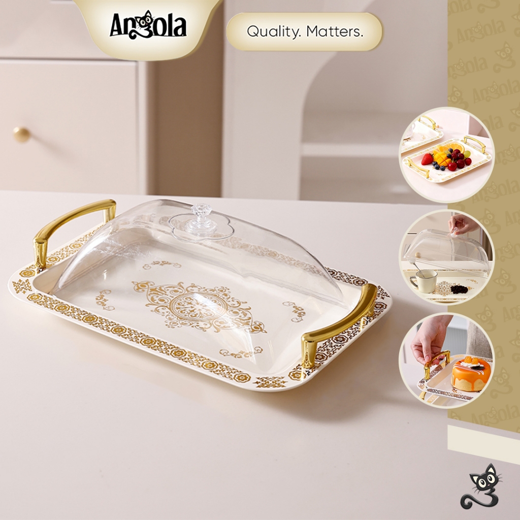 ANGOLA Set Nampan Saji Makanan Buah Lauk Camilan C26 dengan Tutup Nampan Mewah Handle Gold