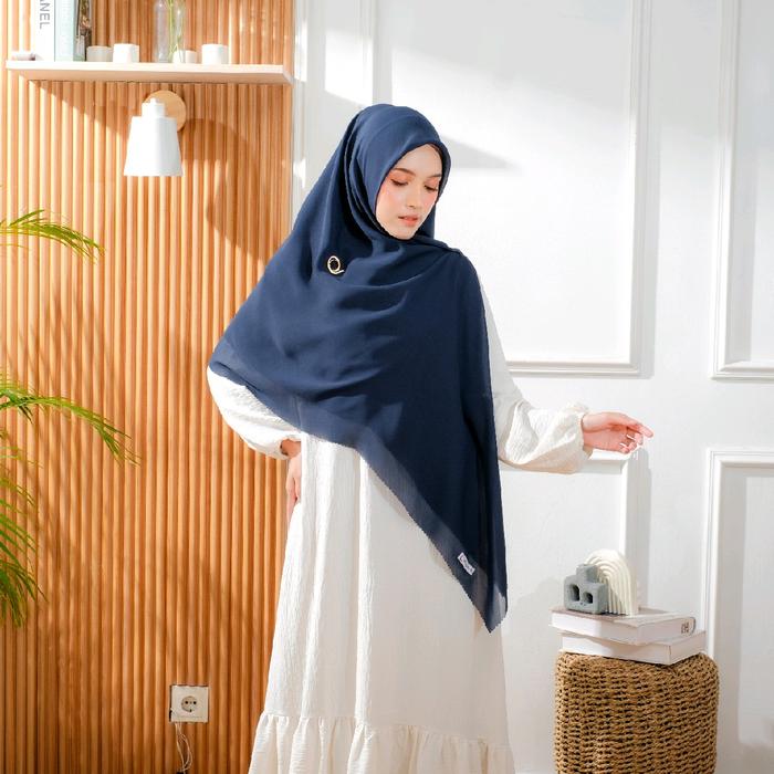 Kerudung Hijab Segi Empat Besar Jumbo Syar'I Polycatton Nyaman Square Syari Muslim - Navy 150Cm, 150Cmx150Cm
