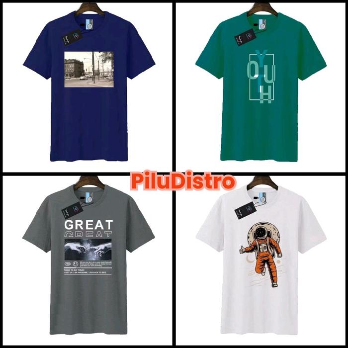 Paket 100Rb Dapat 8 Kaos Distro Pria Motif Random Cakep Atasan Dewasa Variasi Keren - Warna Gelap, L 8 Kaos