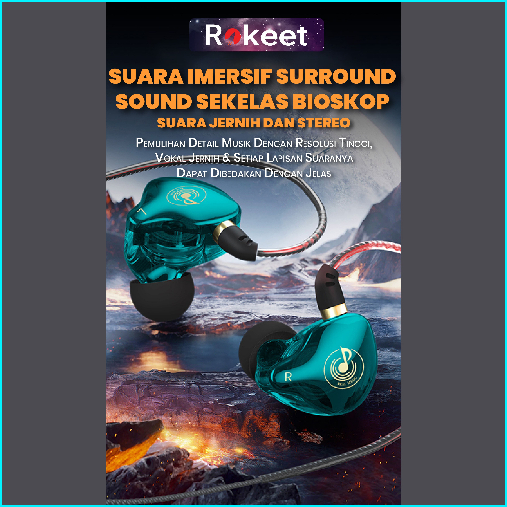 Rokeet In-ear Gaming Earphone Headset Surround Stereo Super Bass Noise Cancelling With Mic Microphone