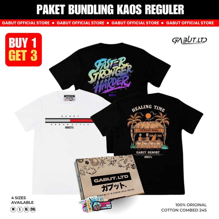 Paket Bundling 3Pcs Kaos Distro Remaja Pria Dan Wanita Bahan Cotton Combed 24S Dtf Gabut Urban, Gabut Faster, Gabut Heal