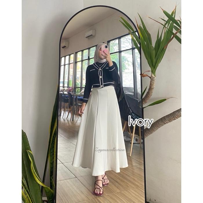 Audy Rok Skirt Scuba Premium Mayung Tebal Bahan Jatuh Korean Style Kekinian Wanita Dewasa Bawahan - Ivory, M (37Kg-50Kg)