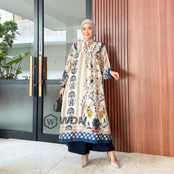 Setelan Midi Katun Delvina Mix Pants / Oneset Setelan Tunik Wanita Rayon Premium Motif Bunga Busui Celana Kulot Crinkle