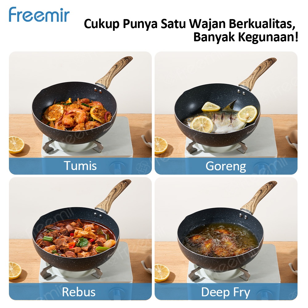 freemir Frypan Cekung 24 cm Anti Lengket Corong Anti Tumpah Anti Lengket Foodgrade Wajan Anti Lengket