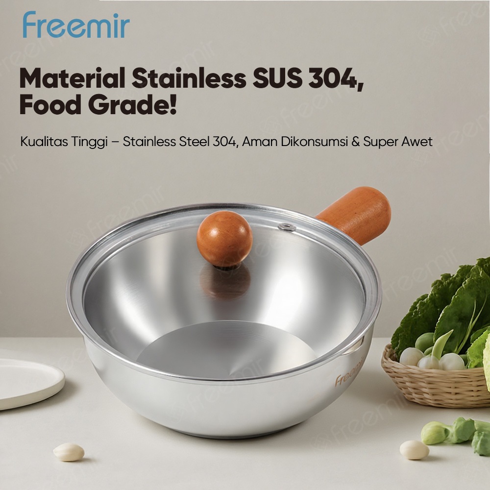 freemir Panci susu mini Kelas makanan baja tahan karat 304 Mudah dibersihkan wajan anti lengket Masak mie, kopi, dan susu Satu pot