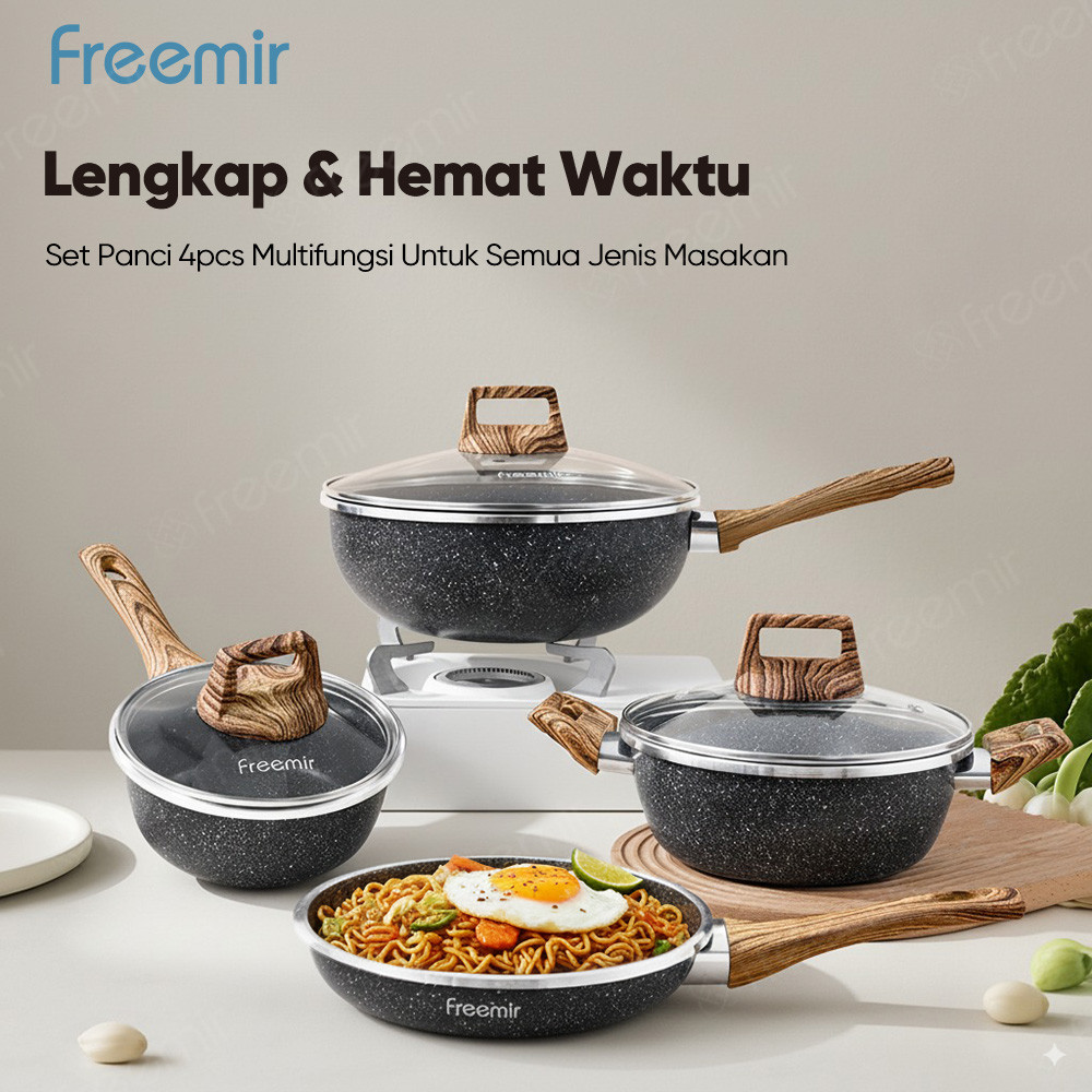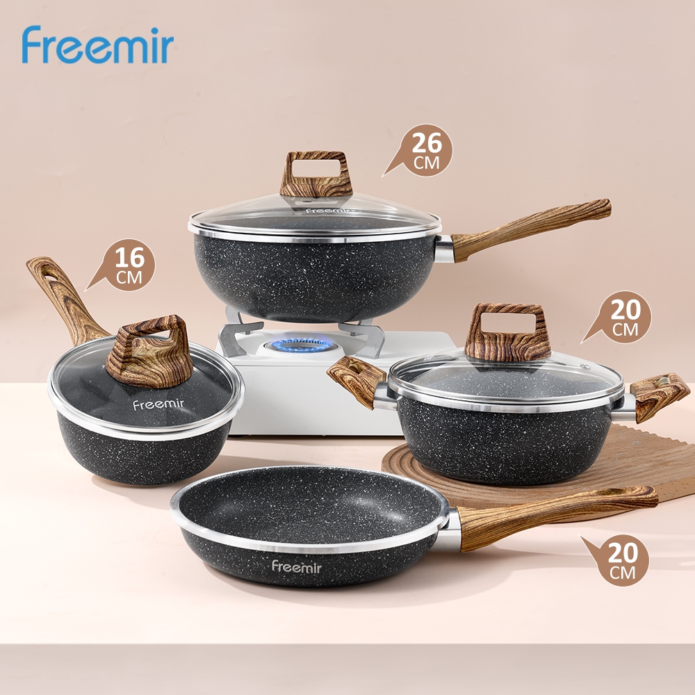 freemir Set 7 Pcs Wajan Panci Ukuran Lengkap dengan Tutup Anti Lengket Marble Lapisan Granit