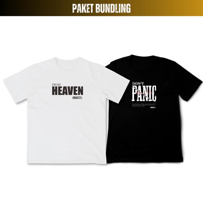 Paket Bundling 2Pcs Kaos Distro Remaja Dewasa Pria Dan Wanita Bahan Cotton Combed 24S | Dtf Heaven Dan Panic - Putih Hea