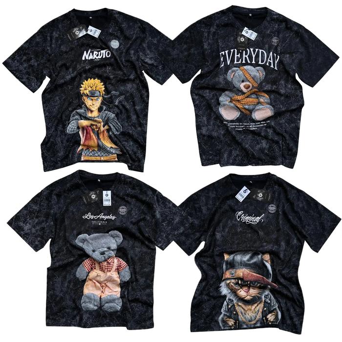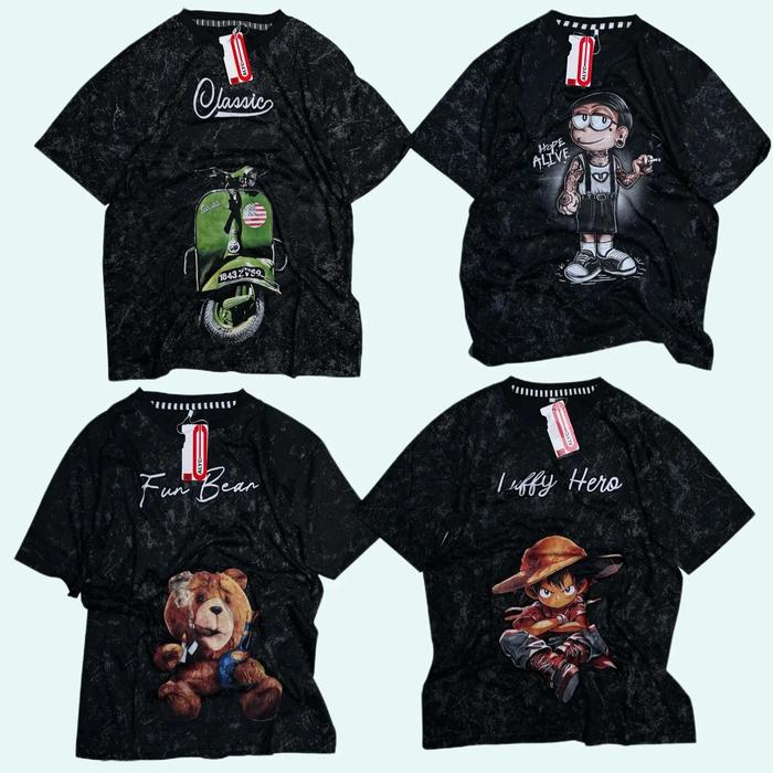 (Motif Acak)Paket 4 Kaos Washing Ful Print Dewasa Ready Size M L Xl Xxl Semi Katun 24S Distro Oblong Pendek Baju Pria Mo