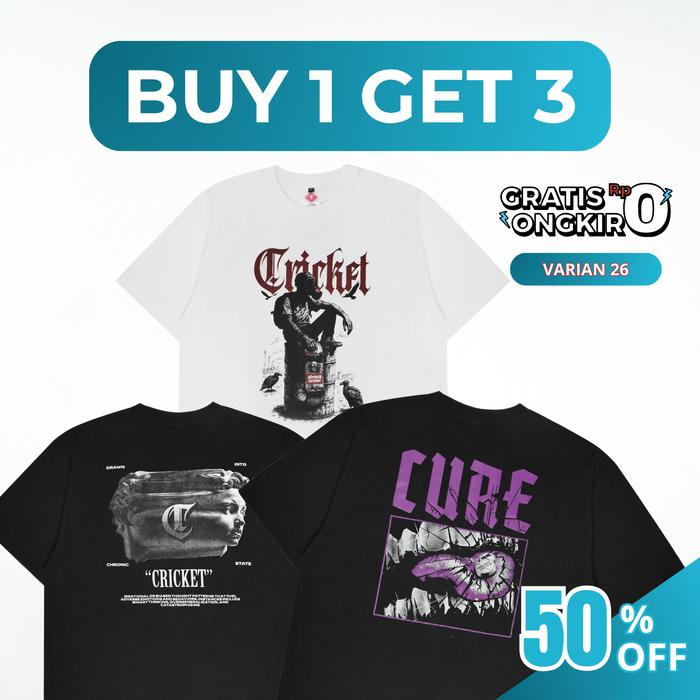Kaos Distro Full Katun 30S Paket Isi 3Pcs Baju Unisex Cricket Apparel Lembut Nyaman - Varian - 1, M