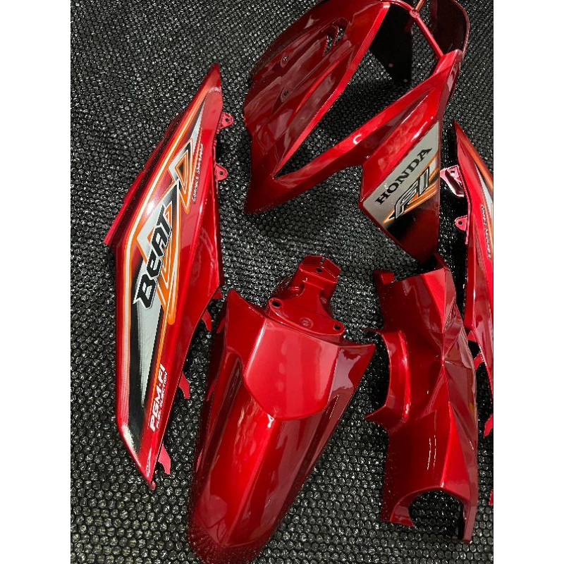 Cover full body halus Honda beat fi warna merah marron plus striping