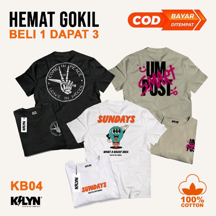 Paket 3 Pcs Kaos Distro (Bisa ) Kilyn Store / Ready Semua Ukuran (M, L, Xl) Cotton 24S (Bahan Tebal Nyaman Dipakai