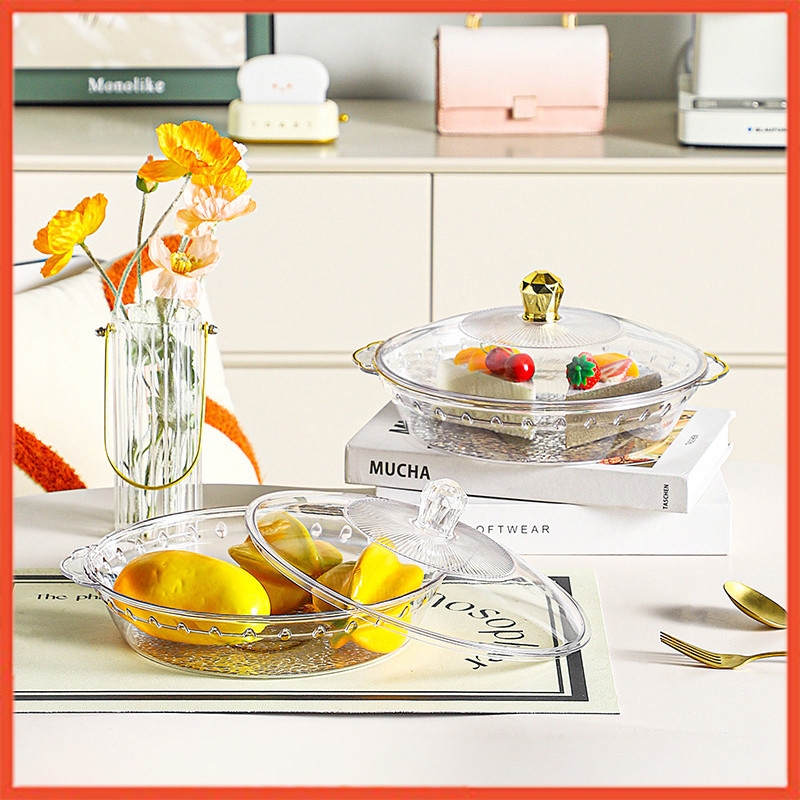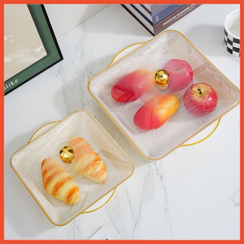 Hoptech - Nampan Plastik Aesthetic dengan Tutup - Tempat Buah & Roti | Multifungsi Tahan Lama