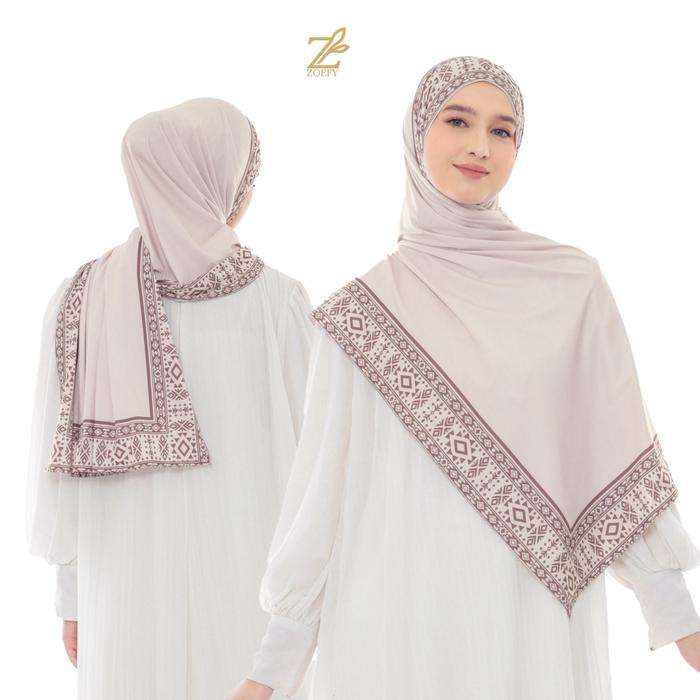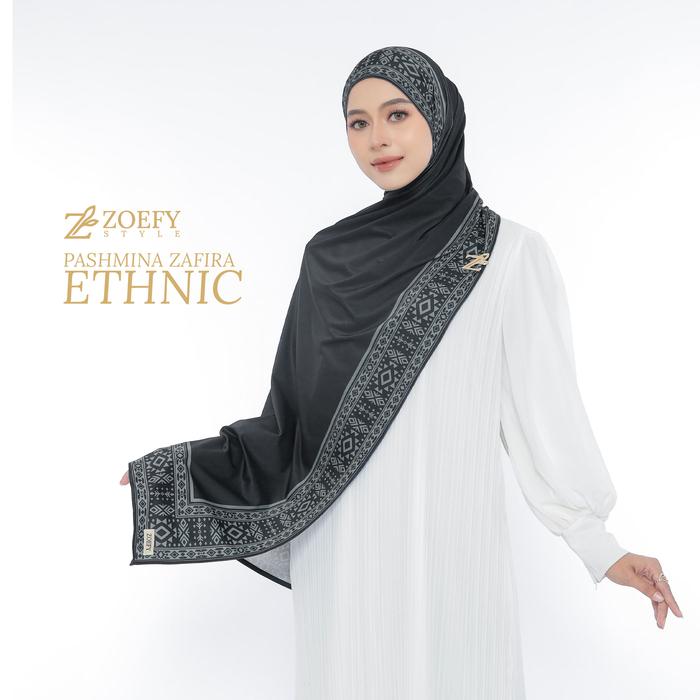 Zoefy - Pashmina Zafira Ethnic Series Jersey Printing Motif Bunga Kerudung Syal - Abu Tua