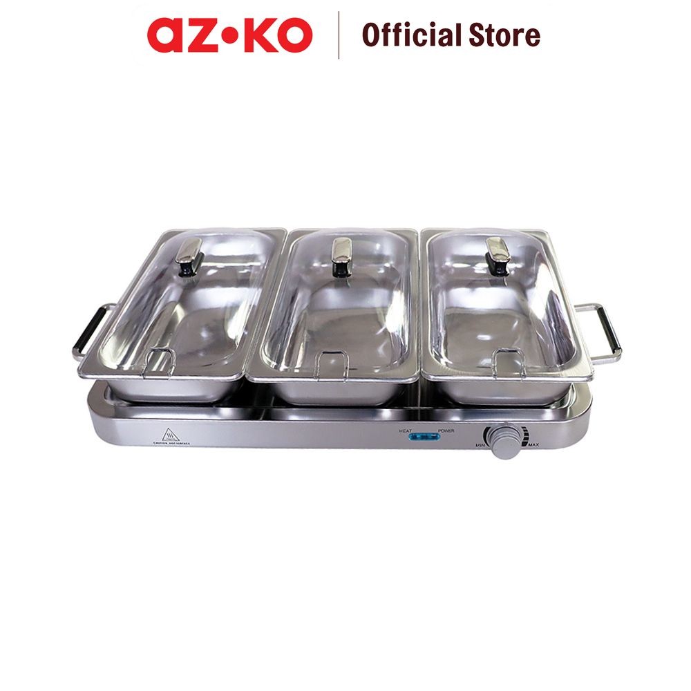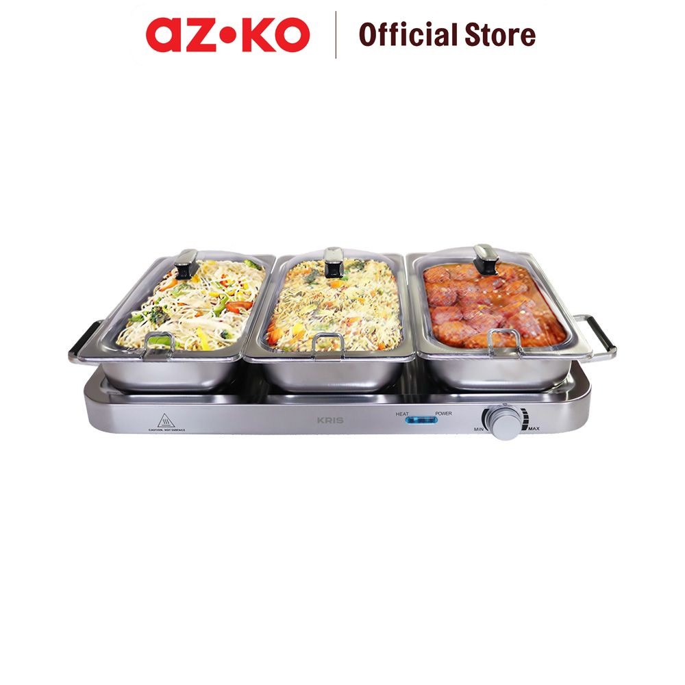 AZKO Kris Penghangat Makanan 3 Pan Stainless Steel Warming Tray Chafing Dishes Kitchen Stuff Wadah Saji Hidangan
