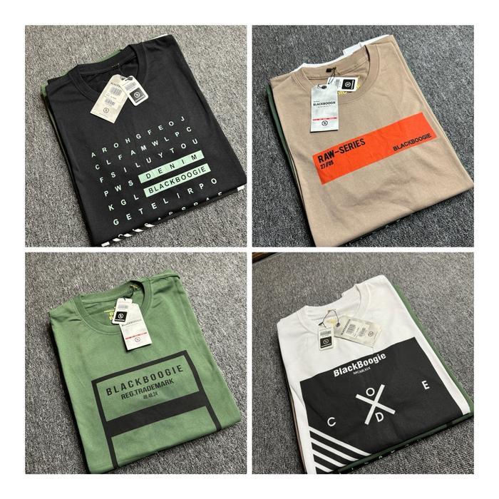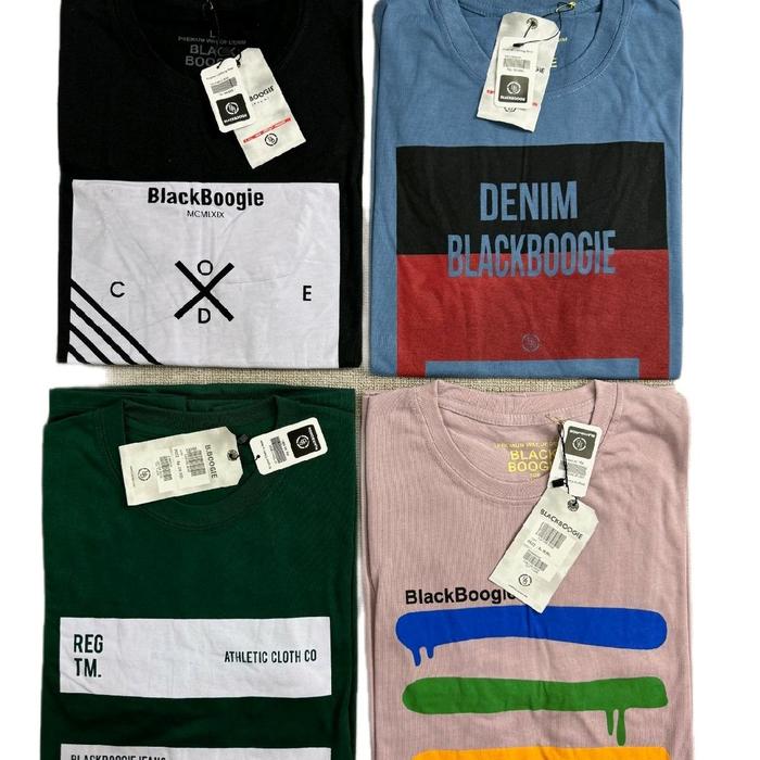 Kaos Distro Blackboogie 4 Pcs 100 Katun Pria Motif Keren Baju Dewasa Oblong Sablon Semi Atasan Cowok T-Shirt Pendek Uni