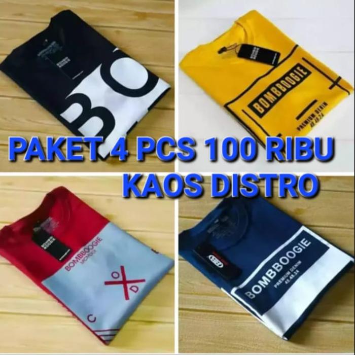 Paket 4Pcs Kaos 100 Ribu Ka0S Distro Bandung Kaos Pria Wanita Bahan Semi Kattun Nyaman Polos Panjang Distro Oblong Tang