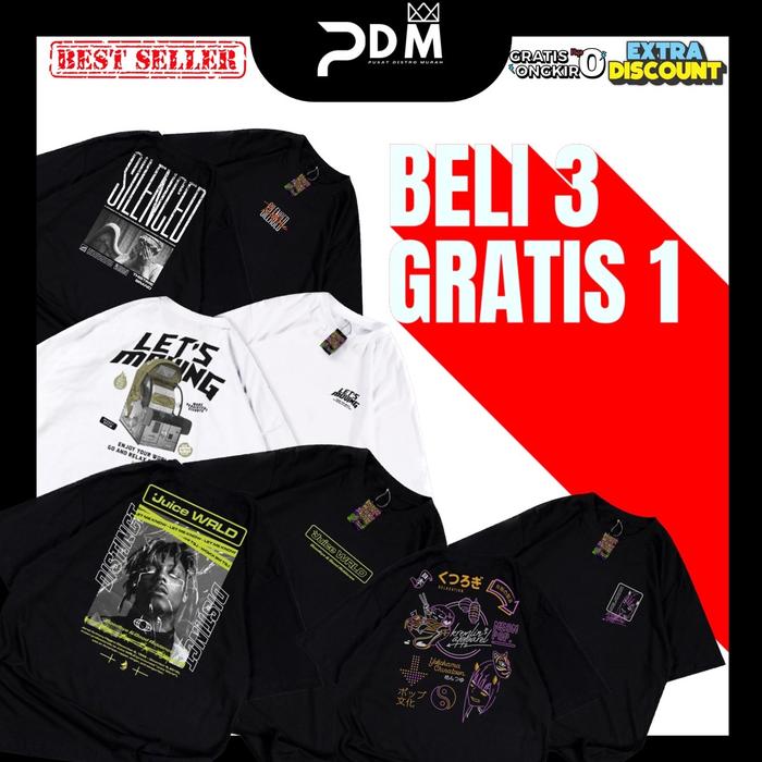 Paket Murah 4 Pcs In 1 Kaos Distro Grosir Semi Katun Premium Sablon Platisol.Baju Pria Oblong Atasan Pria Unisex Mot