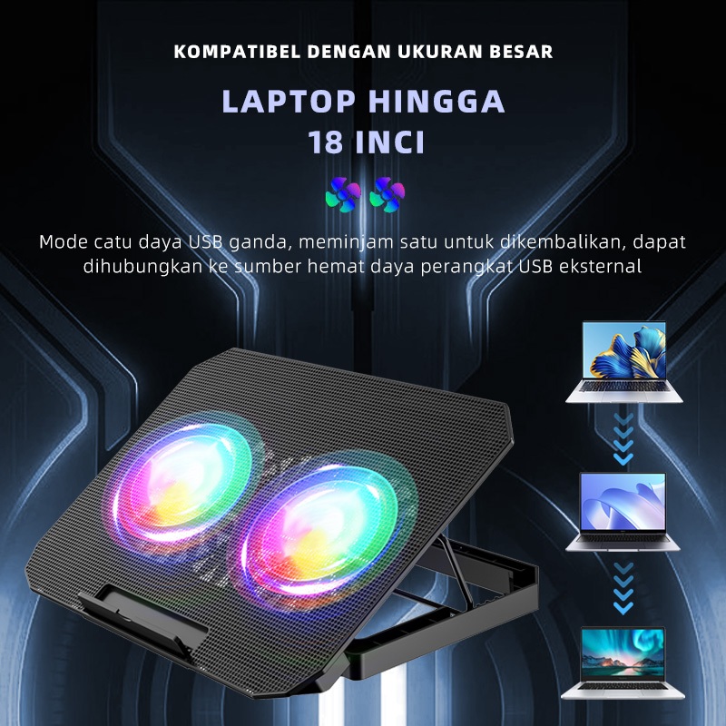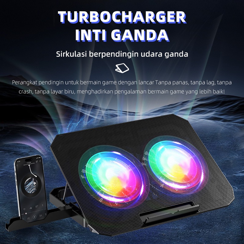 OLYPS Cooling Pad Laptop RGB Gaming Kipas Pendingin Laptop N33 With Phone Stand - 7 Level Adjustable