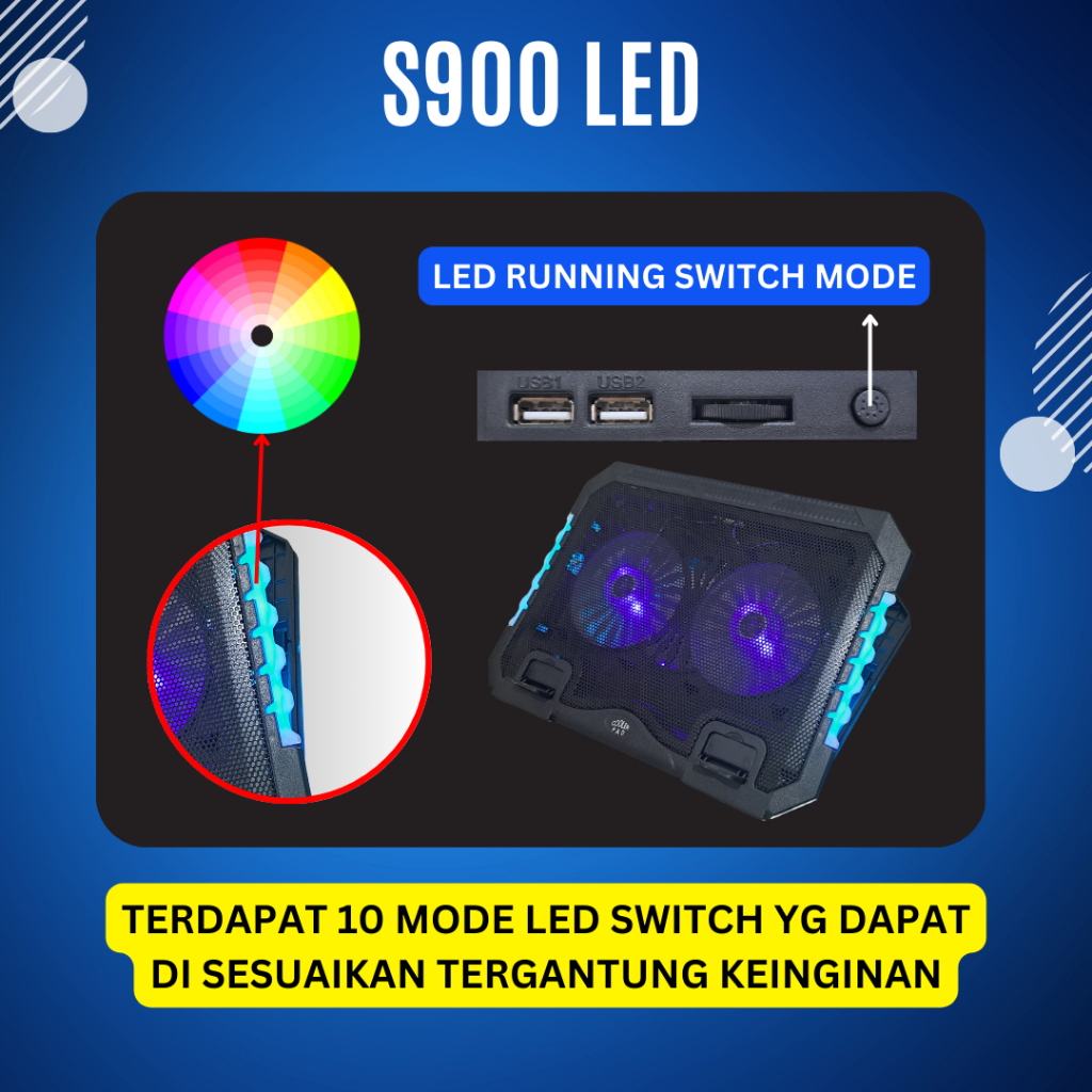 Quinton S900 kipas laptop gaming cooling pad 2 fan 14cm led RGB Running 3 in 1 untuk semua laptop
