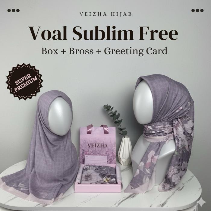 Voal Motif Sublim Free Box Tebal, Bros & Greeting Card Kerudung Segi Empat - Ayra 1