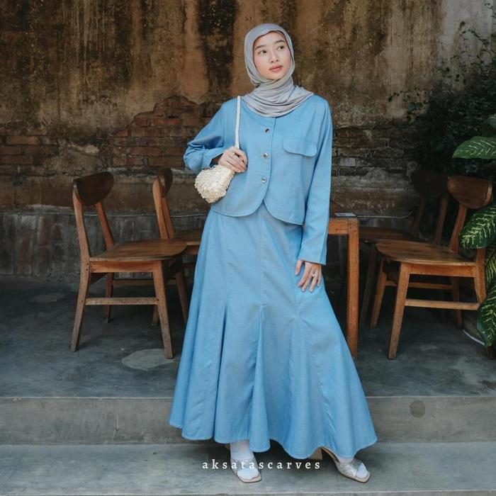 Aksatascarves - Binda Flare Skirt [Ready Stock] - Black Charcoal, (Upsize)