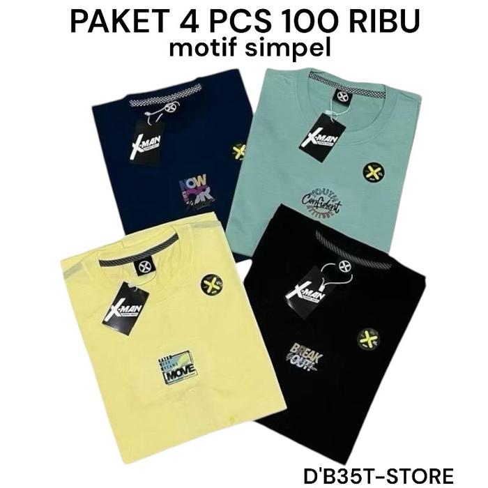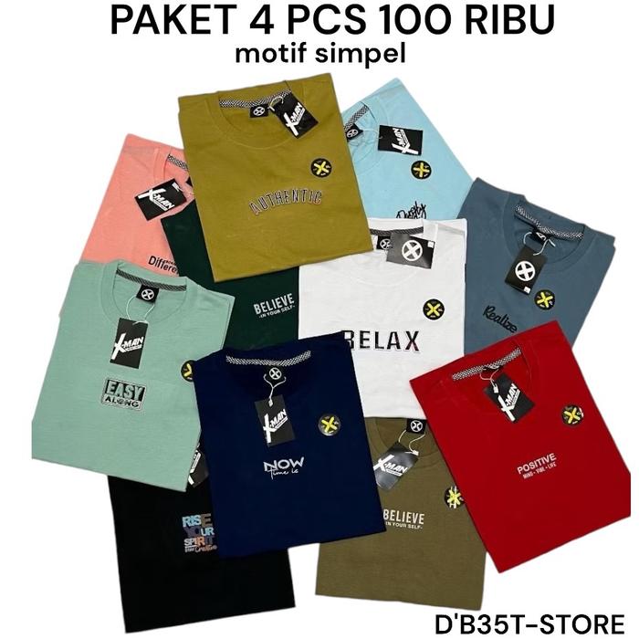 Paket Hemat 4 Potong 100 Ribu Kaos Distro/ Kaos Oblong/ Kaos Harian/ Kaos Motif Simpel/ Kaos Branded/ Kaos Acak Motif/ K